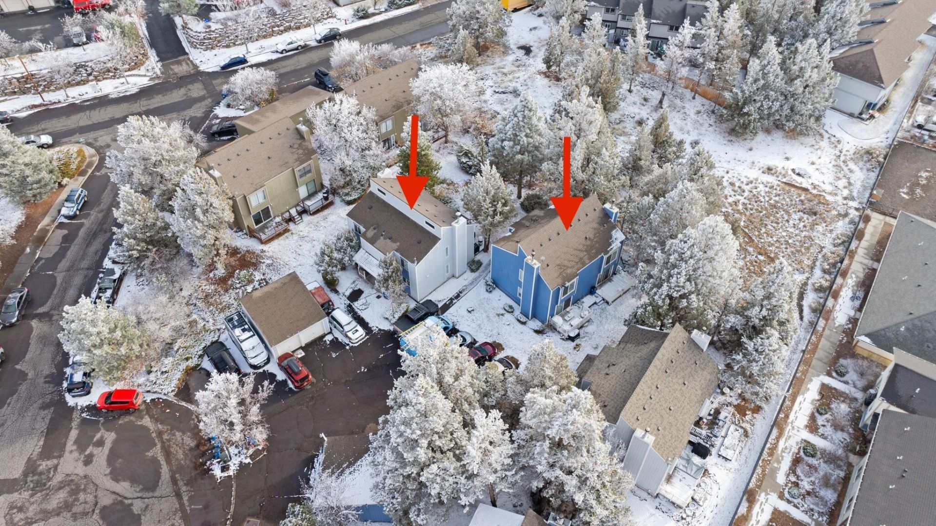 Four-unit property on the highly sought-after NE side, located in a quiet cul-de-sac and currently at 100% occupancy with strong, consistent rental income. Exteriors have been refreshed and the property has seen recent upgrades.Each unit offers 2 bedrooms, 1.5 baths, and approximately 1,046 sq. ft. across two levels. Main level includes a functional kitchen, living room, half bath, and generous storage. Upstairs features two bedrooms, a full bath, and a dedicated laundry closet with washer and dryer hookups. Private rear decks and wood stoves add to tenant appeal. Additional features include detached garage/storage space and a semi-private green space with mature trees. Conveniently located near Pine Nursery Park, Pilot Butte, the Forum Shopping Center, Costco, St. Charles Medical Center, and a growing mix of restaurants and services. Available individually or as part of a portfolio with 2025 and 2026 NE Neil Way.